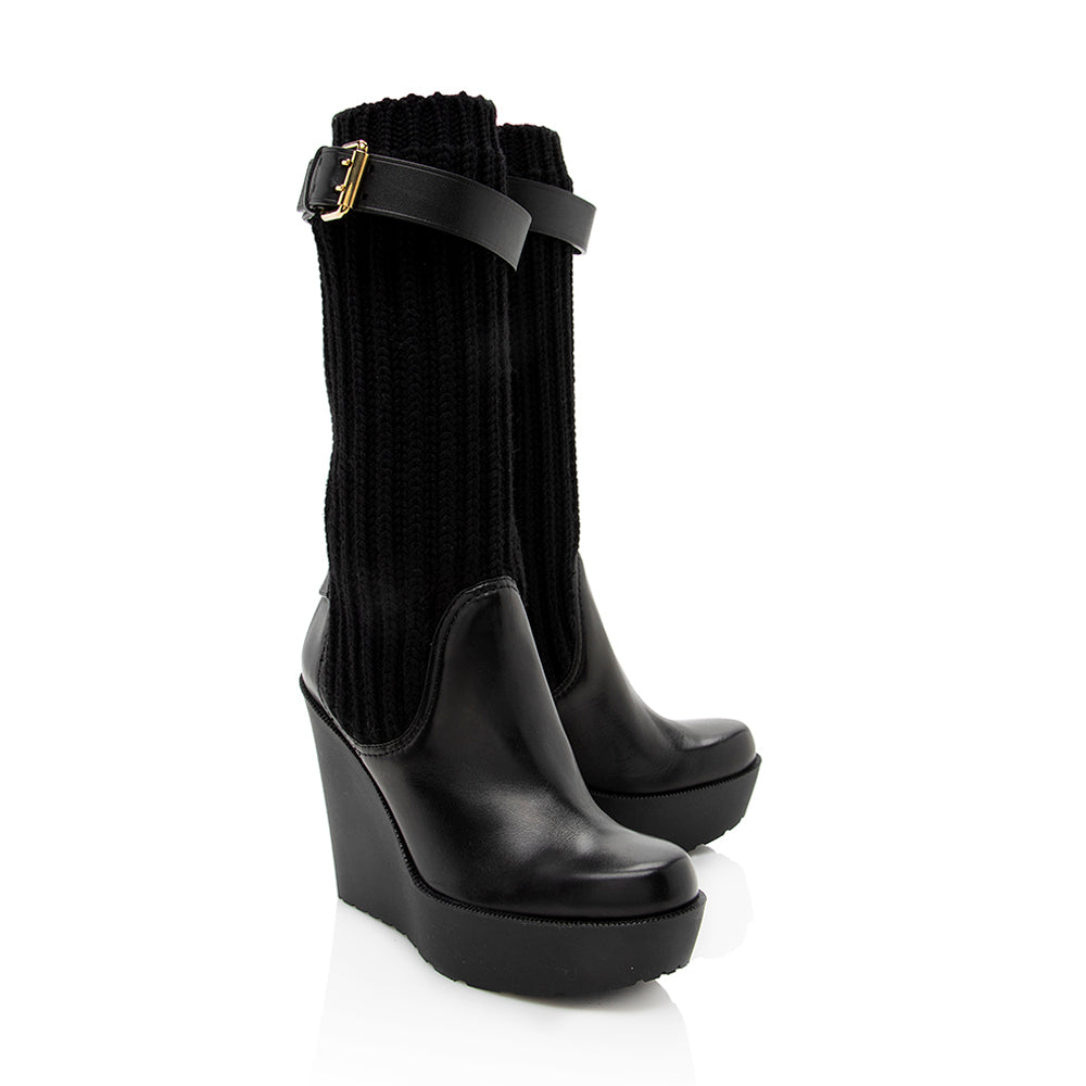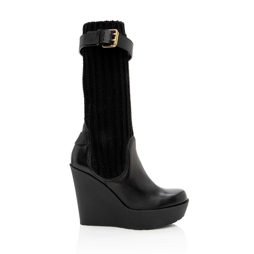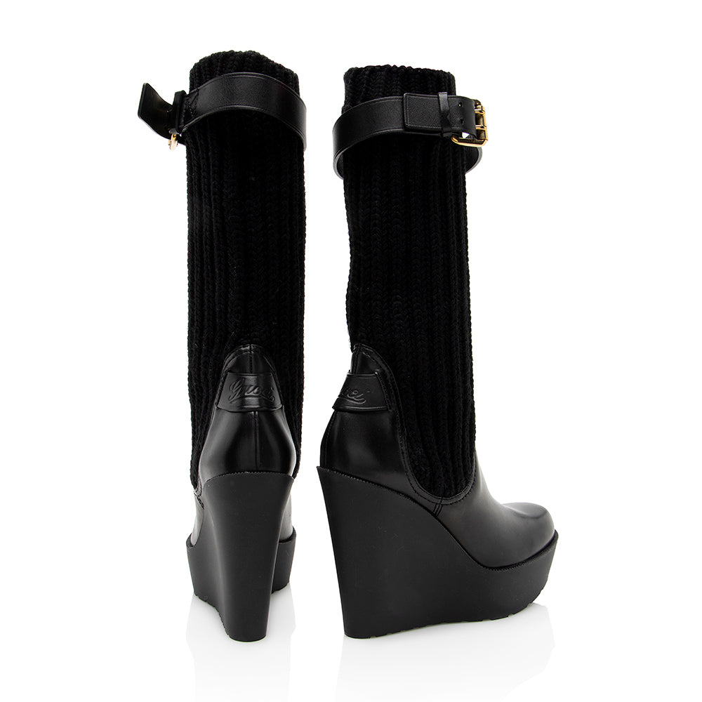 Gucci Leather Buckle Sock Wedge Boots - Size 6 / 36 (SHF-18840)
