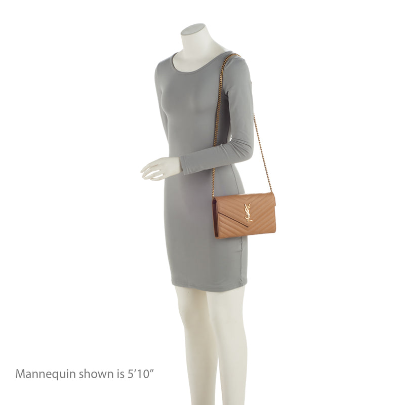 Saint Laurent Matelasse Grain de Poudre Monogram Chain Wallet (SHF-QuiirS)