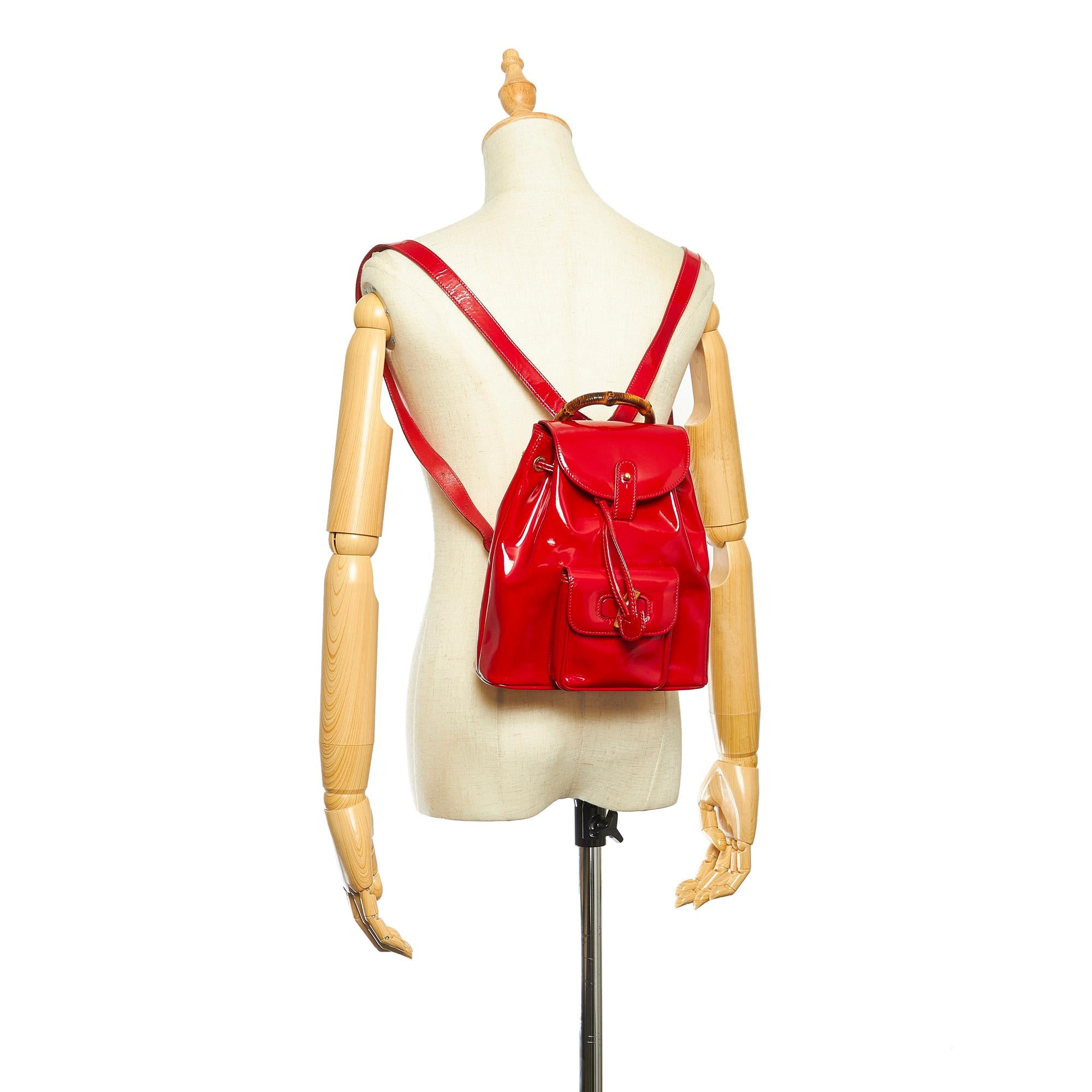 Gucci Bamboo Patent Leather Drawstring Backpack (SHG-22346)