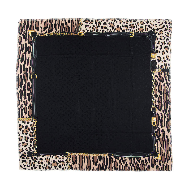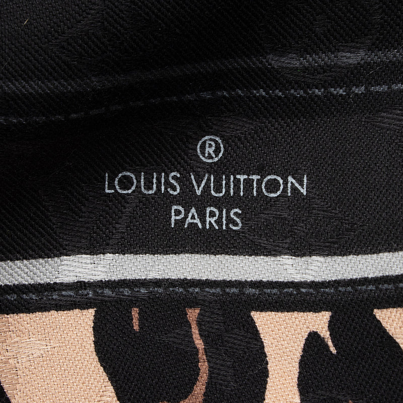 Louis Vuitton Silk Wool Leopard Monogram 140cm Shawl (SHF-y8QMXZ)
