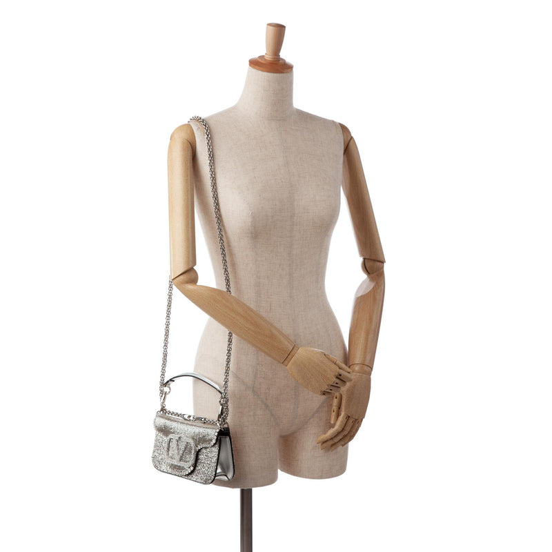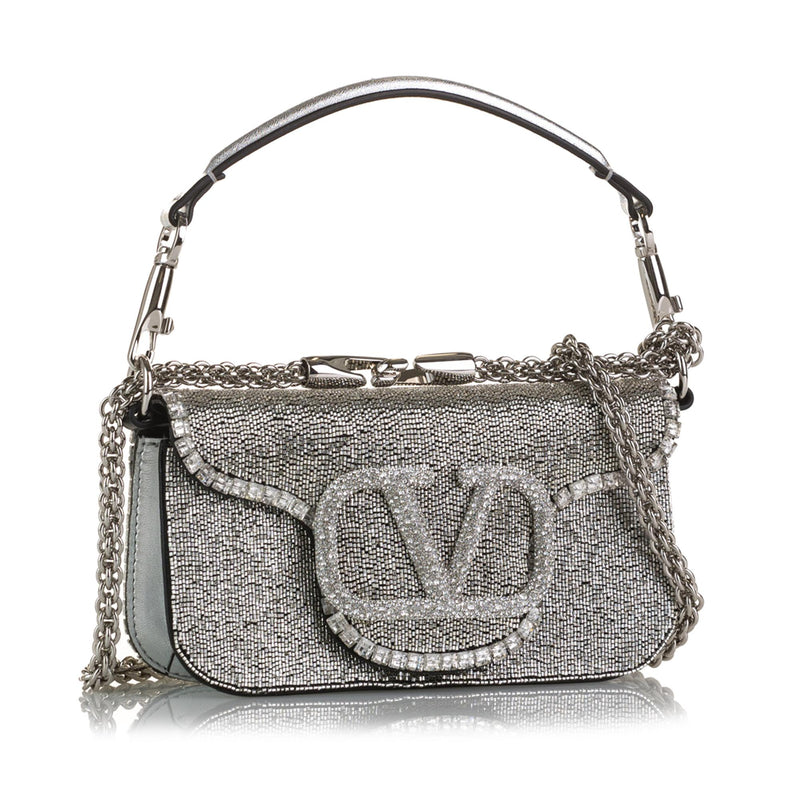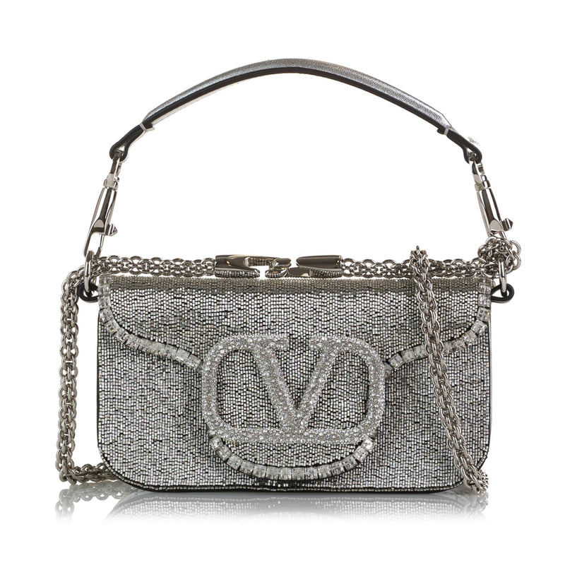 Valentino Small Crystal Embellished Loco VLogo Satchel (SHG-voDPnk)